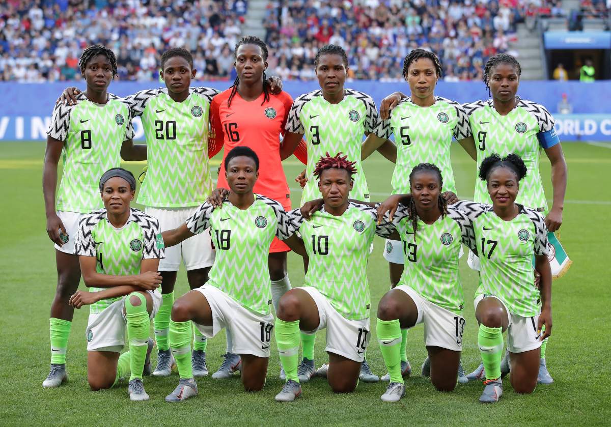 RENNES, FRANCE - JUNE 17: The Nigeria players pose for a team photo prior to the 2019 FIFA Women's World Cup France group A match between Nigeria and France at Roazhon Park on June 17, 2019 in Rennes, France. (Photo by Richard Heathcote/Getty Images)
