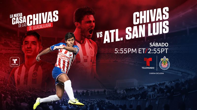 La cobertura exclusiva de Telemundo Deportes de las Chivas de Guadalajara en la Liga MX continúa este fin de semana con el partido contra el Atlético San Luis, en la quinta jornada del torneo de este año, Guard1anes 2020. El partido se transmitirá en vivo por Telemundo el sábado 15 de agosto a las 5:55 p.m. ET / 2:55 p.m. PT, con cobertura simultánea en la aplicación Telemundo Deportes, cobertura en inglés en SAP y cobertura previa y posterior en la cadena hermana de Telemundo, Universo.