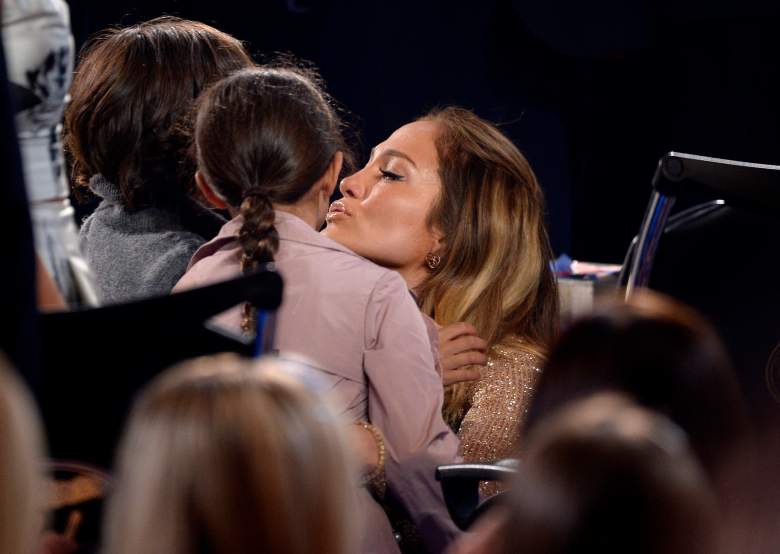 J.Lo se tomó un momento para saludar a sus hijos que se encontraban entre el público de 'American Idol'. (Getty)