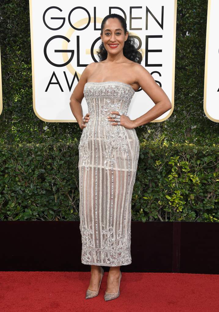 Tracee Ellis Ross en la alfombra roja de los Globos de Oro 2017. (Getty)