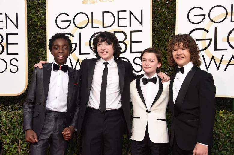 Los actores Caleb McLaughlin, Finn Wolfhard, Noah Schnapp y Gaten Matarazzo en la alfombra roja de los Globos de Oro 2017. (Getty)
