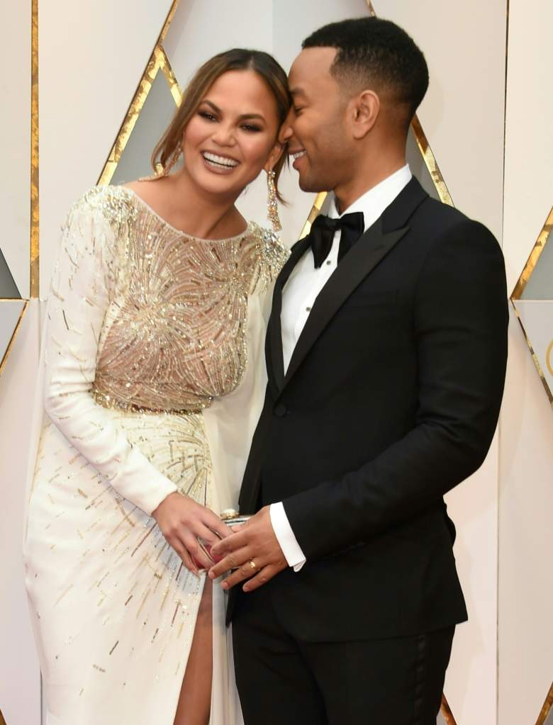 John Legend (der.) y su esposa Chrissy Teigen en la alfombra roja de los Premios Oscar en el Dolby Theater en Hollywood, California. (Getty)