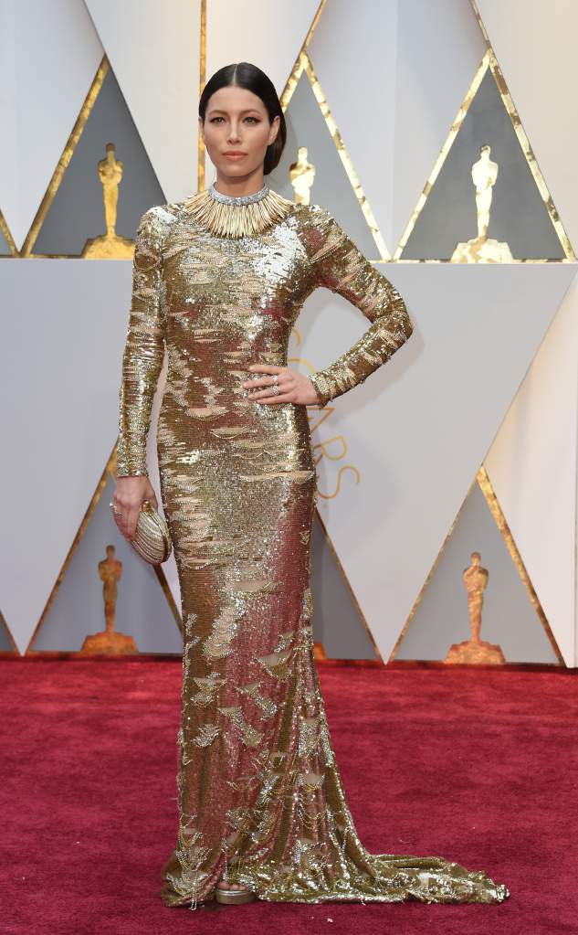 Jessica Biel en la alfombra roja de los Premios Oscar en el Dolby Theater en Hollywood, California. (Getty)