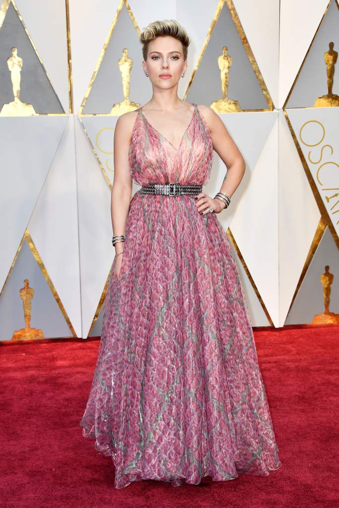 Scarlett Johansson en la alfombra roja de los Premios Oscar en el Dolby Theater en Hollywood, California. (Getty)
