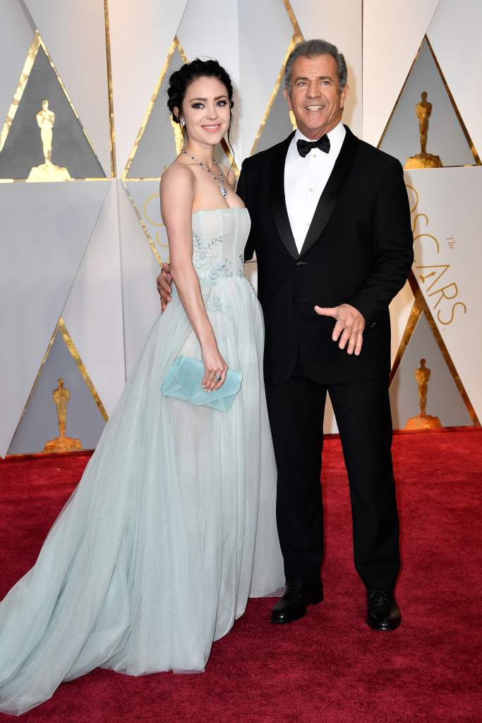 Rosalind Ross y su esposo Mel Gibson Scarlett Johansson en la alfombra roja de los Premios Oscar en el Dolby Theater en Hollywood, California. (Getty)