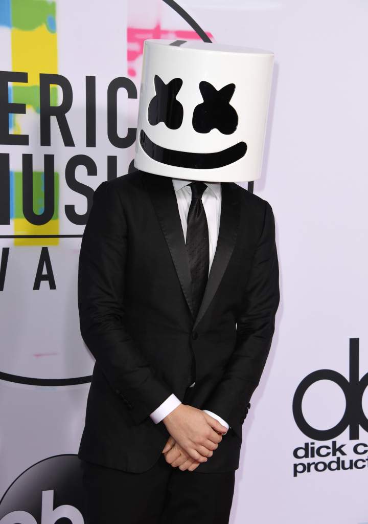 DJ Marshmello - no sabíamos si ponerlo en los mejores looks porque no es por nada el traje está lindo pero a quién se le ocurre ponerse un balde en la cabeza para ir a una alfombra.