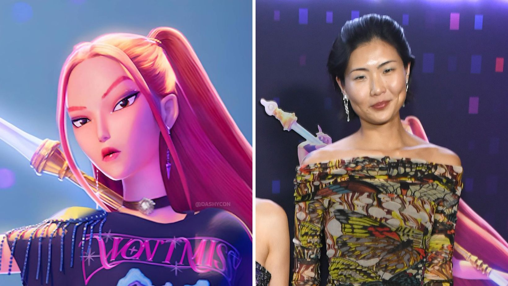 La actriz Arden Cho interpreta a Rumi, vocalista de la banda femenina de K-Pop HUNTR/X y una feroz luchadora que debe derrotar tanto a demonios literales como a algunos de los suyos.